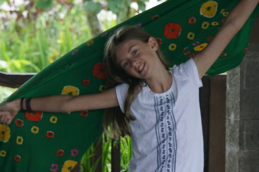 DSC02072 Published June 16, 2013 at 4912 × 3264 in Coffee, Chaing-Chaings and Crumbling Commodes Allie with her sarong